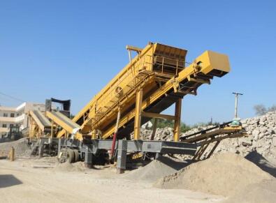 移動式破碎站料倉選擇中心流型方料倉時,料倉下部可設振動棒條給料機以彌補料倉卸料料流不穩定的缺點。